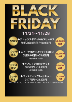 お知らせイベントキャンペーンニュースブログ2025/11/28【BLACK FRIDAY 本日最終日!】アロマセラピーアロマデキラリオイルマッサージデトックスブラックフライデー三島エステ体質改善毒出し沼津エステ癒しサロン